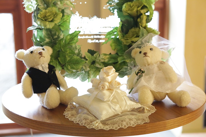 合わせてブーケもパステルカラー幸せ色のプリザーブドフラワーで贅沢に仕上げています。
